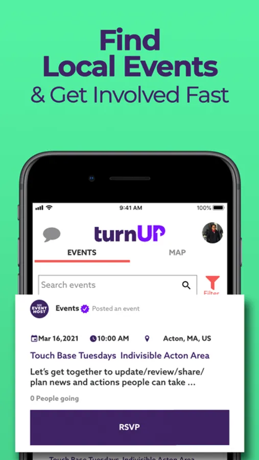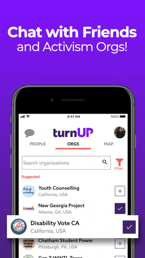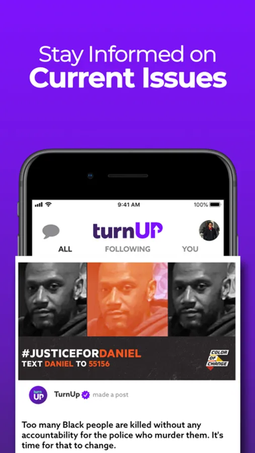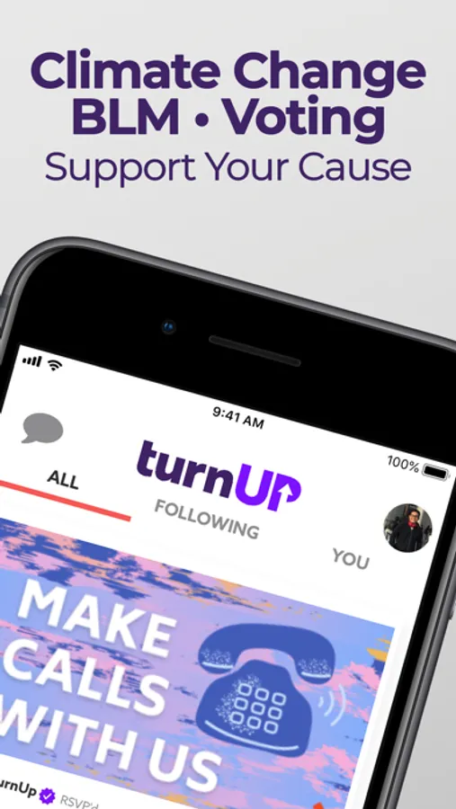 TurnUp is a social network app for youth activism. Get social! Fill your feed with issues, events, people, resources and organizations that you care about. See what your friends and your selected organizations have been doing. Find and share events, digital activism opportunities and post like you would on other social media platforms.