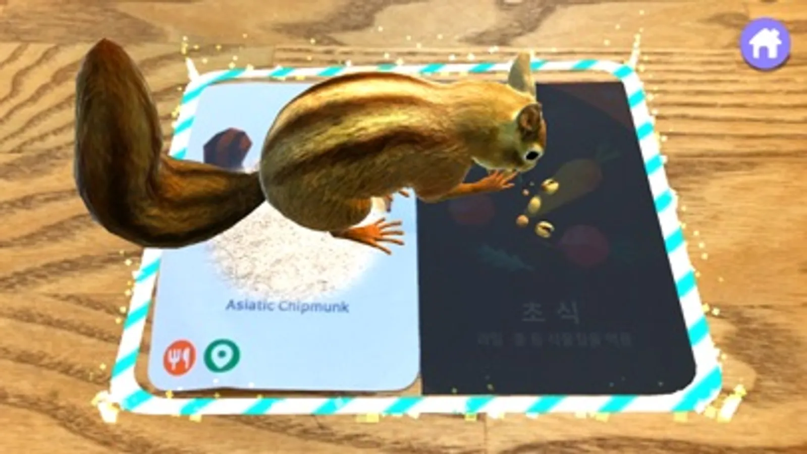 - 기본 동물카드에 앱을 실행해서 비추면, 카드 위로 동물이 증강되어 나타납니다.