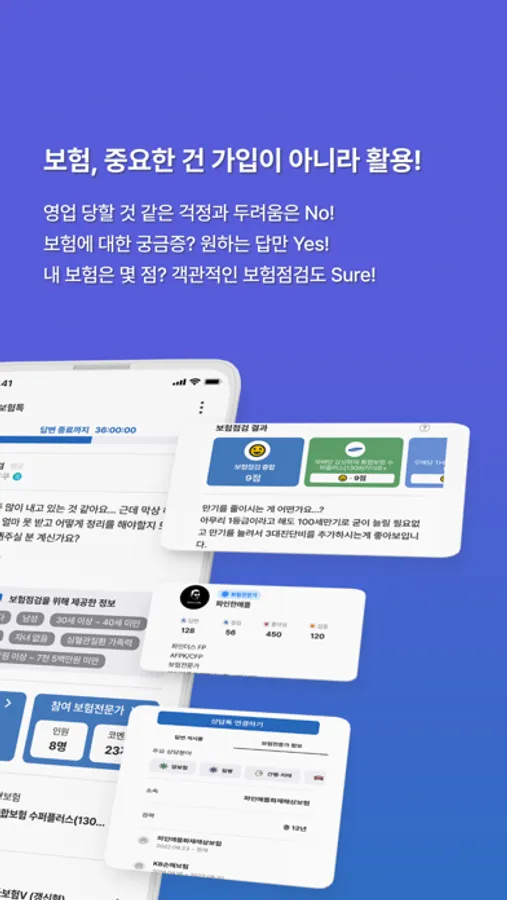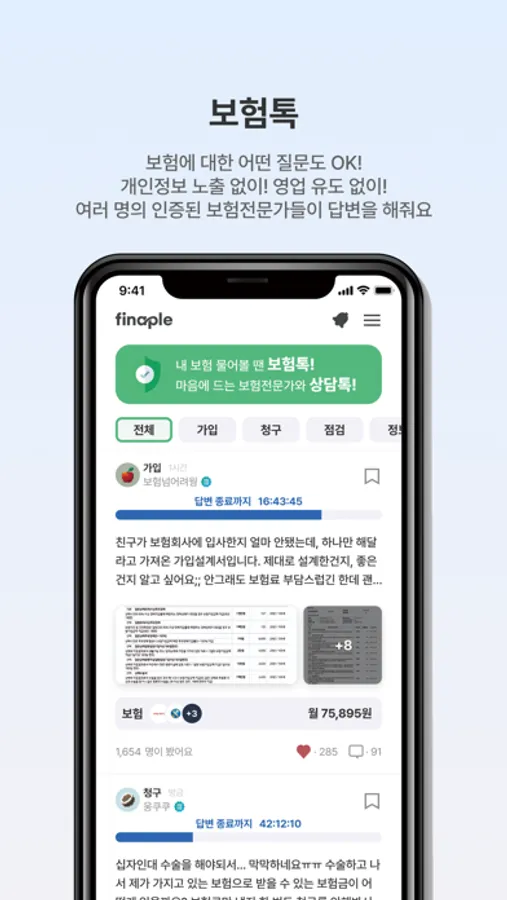 개인정보 노출 없이, 영업 유도 없이, 여러 명의 인증된 보험전문가들이 답변을 해줘요.