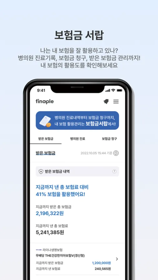 병의원 진료기록, 보험금 청구, 받은 보험금 관리까지!