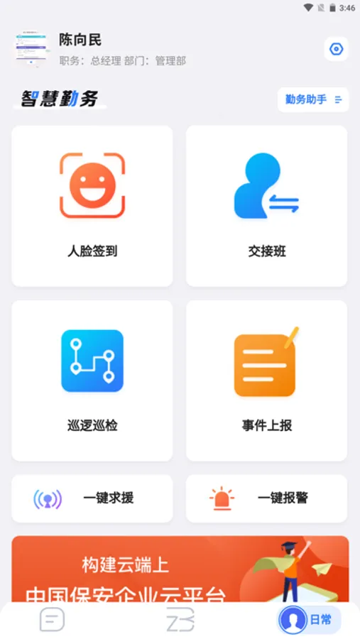 “云端上智慧保安”智慧办公的应用,全面规范企业作业流程,实现企业信息共享与高效协同。