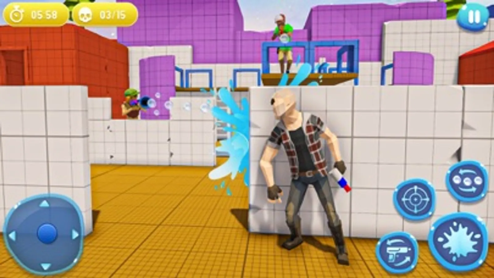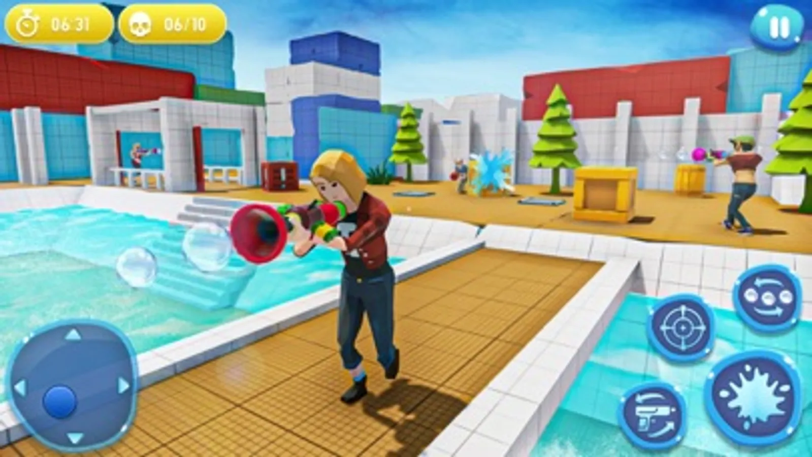 Save yourself from the water splash coming from your opponents. Enjoy party craft find a cover or climb to the walls to aim from the top. The Water Gun Battle is a solo TPS school party and a super splash game with a cartoon environment and multiple cute girls and nice boys characters. Water Battle Arena levels are designed with great precision to maximize the water fun around.