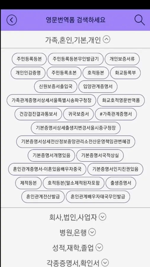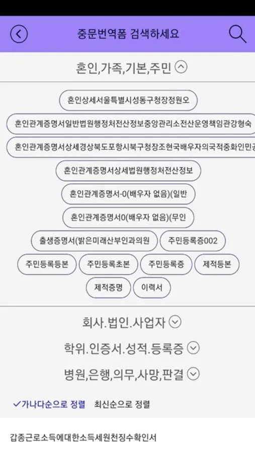 분야별 가장 많이 사용하는 번역폼을 3개국 샘플로 올려두었습니다.