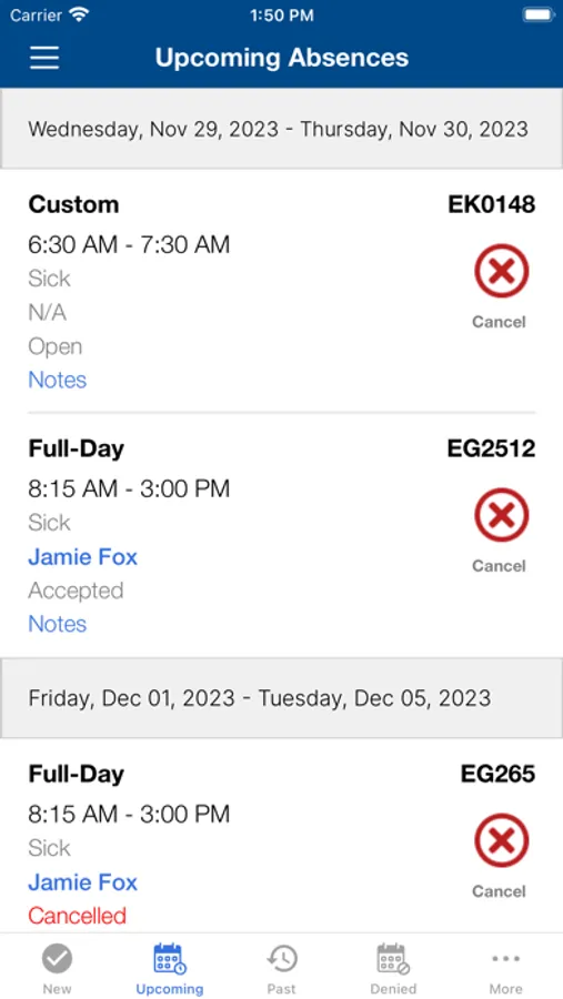 View Scheduled, Past and Denied Absences