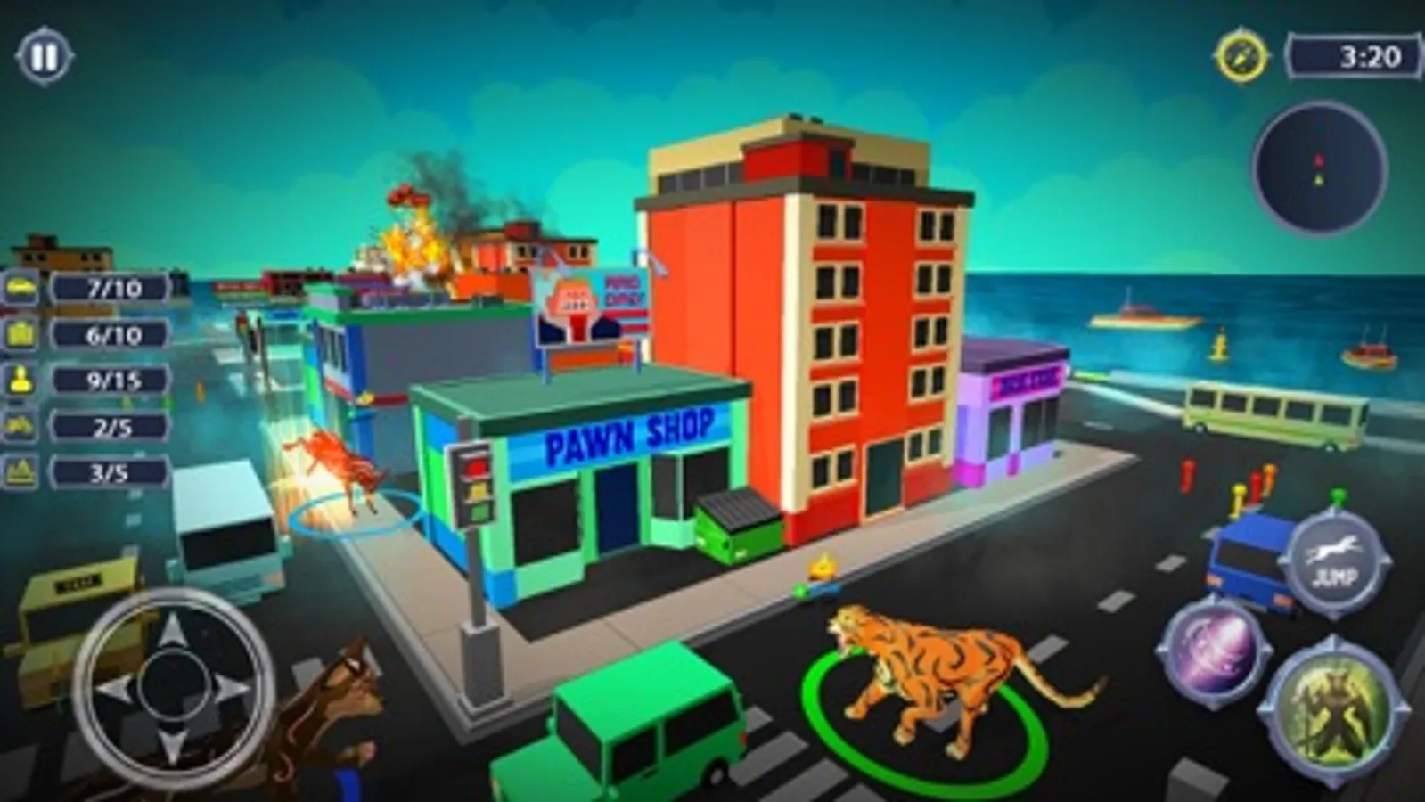 Tigers have been resurrected to the present day! Simple control with just swipes. Move the wild tiger with a swipe to destroy the city. If a bigger level lion attacks you, just roar, don’t attack, and come back to stun the town. Crush and smash vehicles with an extraordinary Monster Tiger Challenge.
