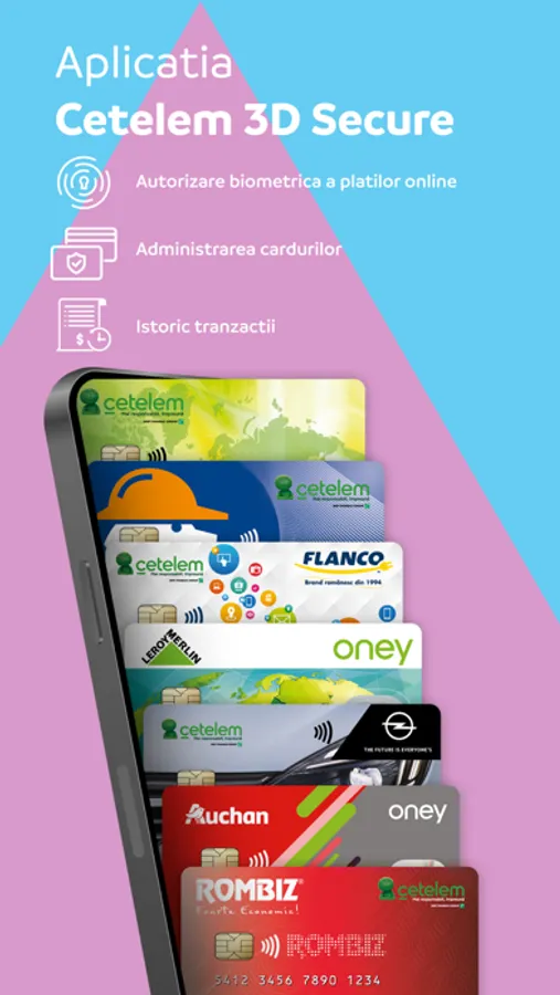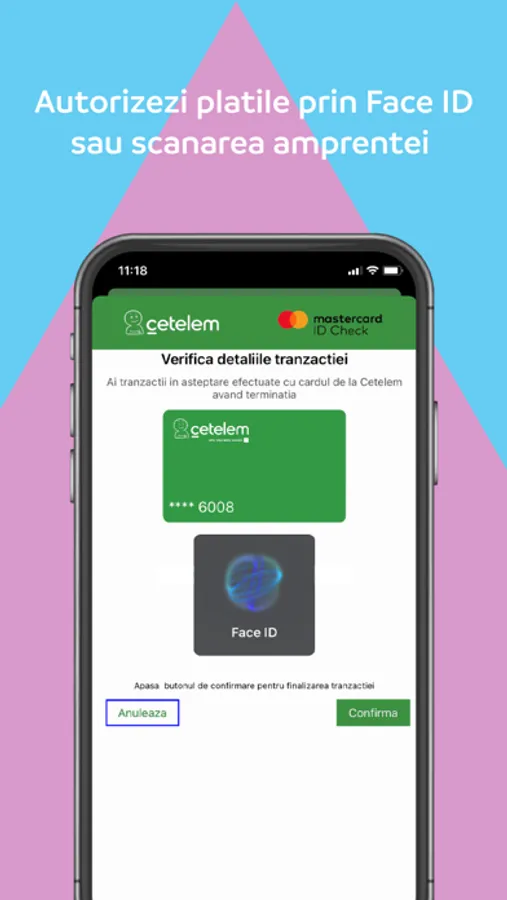- autorizezi rapid si sigur plățile online cu cardul Cetelem folosind metodele de autentificare biometrica* disponibile pe telefonul tau mobil