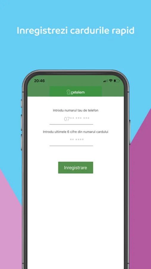 Te poți înregistra în aplicația Cetelem 3D Secure folosind numărul de telefon declarat la bancă și ultimele 6 cifre ale cardului tău Cetelem.