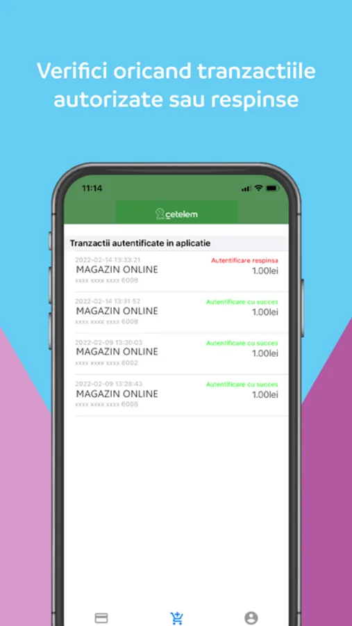 - verifici oricand istoricul tranzacțiilor online efectuate cu cardul tau Cetelem si autorizate prin intermediul aplicației instalate