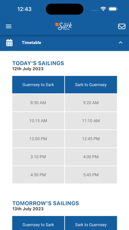 Timetable of sailings for both passenger and cargo services as well as live updates on travel disruption and confirmation when sailings are as scheduled.