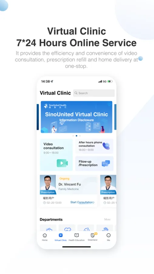 Through SinoUnited Health APP, you have access to high level medical experts and other medical resources through online video consultation at your fingertips.