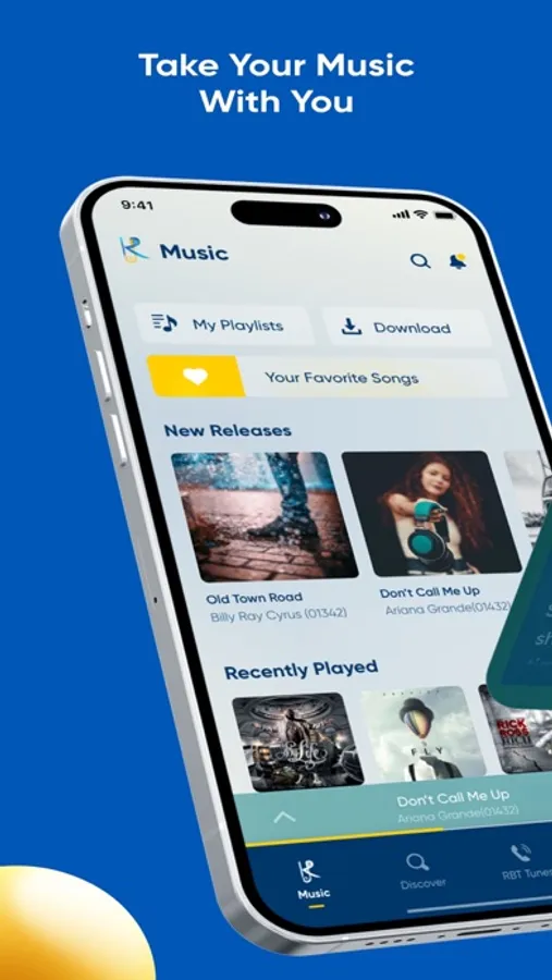Manage your KMusic profile, and service settings, change the language to Arabic, English, or Kurdish, and control your tones.
