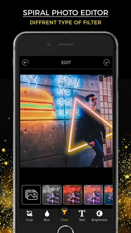 Are you looking for the coolest photo editor with neon photo stickers? Neon Photo Editor No Crop is the perfect app for glow photo edits. Download the best neon photo editing app now! Just make a photo with your selfie camera or choose one from the gallery and your pic editing can start now. Open the “glowing effects” stickers option and choose from many wonderful Shapes, such as geometrical shapes, spiral shapes, glowing triangles, rectangle shapes, diagonal neon frame, lightnings, glow hearts, neon wings, circle frame effects and arrow stickers. Next, we have some popular Words and short catchy phrases. There are also neon Face editor stickers with neon glasses, glossy lips, shiny mustaches, glow effect whiskers and more. There are “neon light editor” Crown stickers with halo effect crowns, neon light crowns, neon light filter hoops, light hats, bright cat ears and more. Next, there are Cafe stickers that have neon light effect cafe and restaurant signs, neon fruit, sweets and more. Lastly, there are neon Animal stickers that have all sorts of “neon effect” animals, such as neon elephant, neon butterfly, wolf and more. Download this “Neon Photo Editor - No Crop photo maker and have great fun!