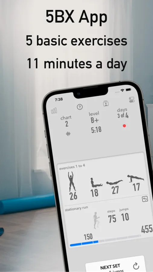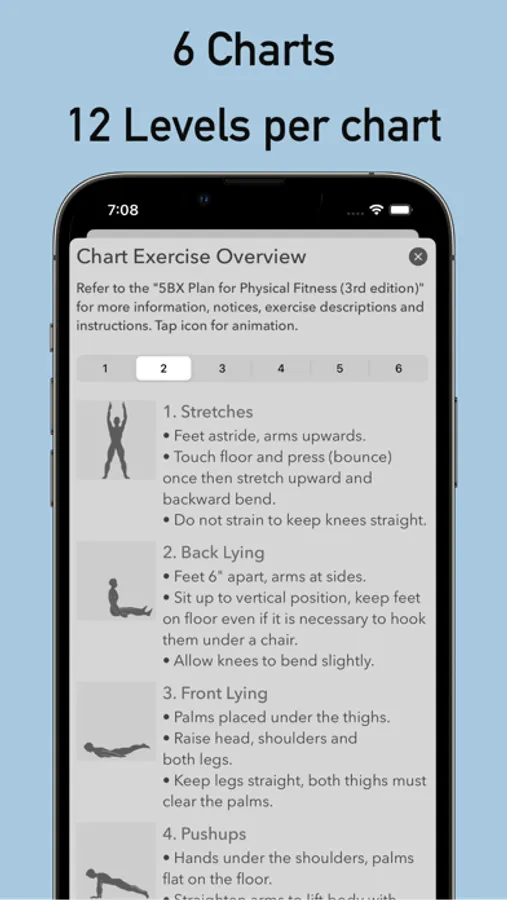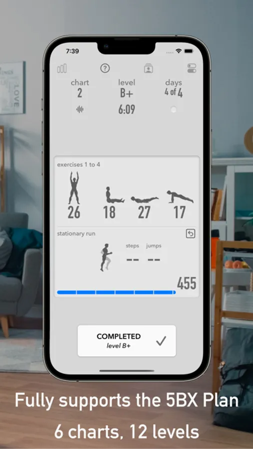 The 5BX App is the easiest way to track 5BX workouts - the classic fitness plan originally developed for the Royal Canadian Air Force. Fully supports the 5BX Plan. 6 charts, 12 levels per chart, 11 minutes a day. Perfect for exercising at home, no equipment needed!