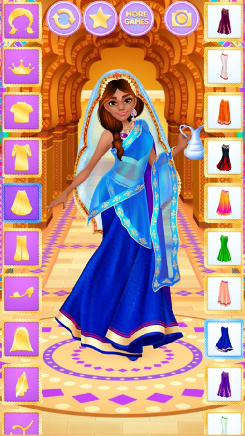 Indian Princess is a new dress up game for girls who are interested in the culture of India, Indian dances and traditional Indian clothes.