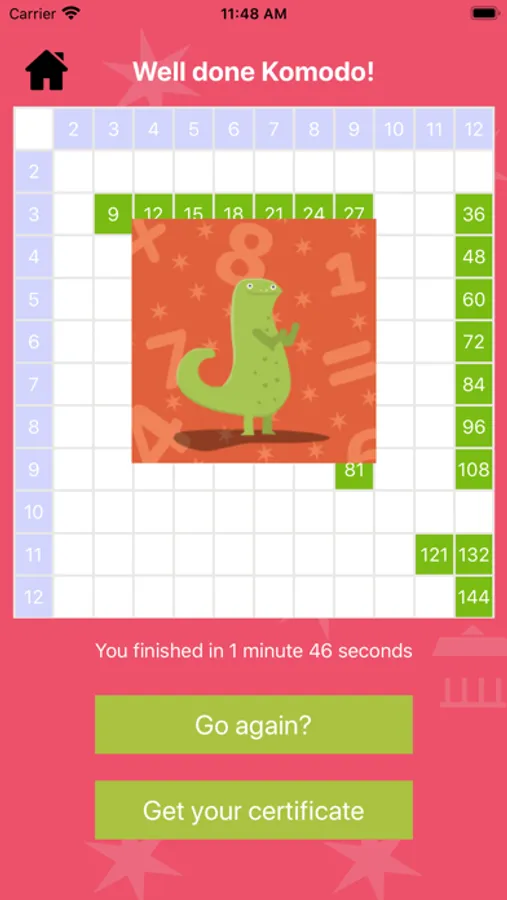 The challenge itself provides an interactive practice grid where the learner answers all the important 38 times tables while being timed. Once the challenge is complete there’s an optional feature to email a certificate and report with parental consent.