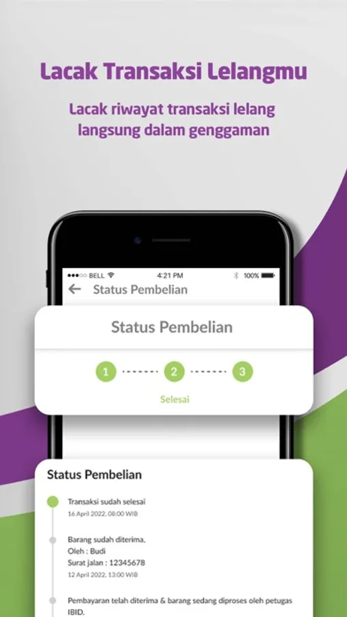 Kamu bisa pantau progress transaksi penjualan maupun pembelian yang dilakukan di IBID mulai dari proses pembelian NPL, pembayaran pelunasan, penitipan barang lelang, hingga kapan kendaraan dan dokumen siap untuk diambil.