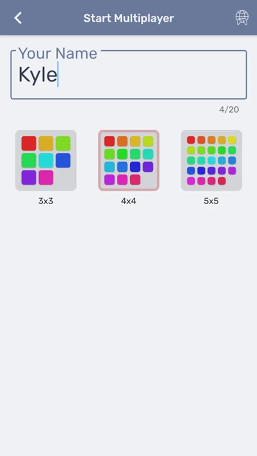 - Type your name and select a board size