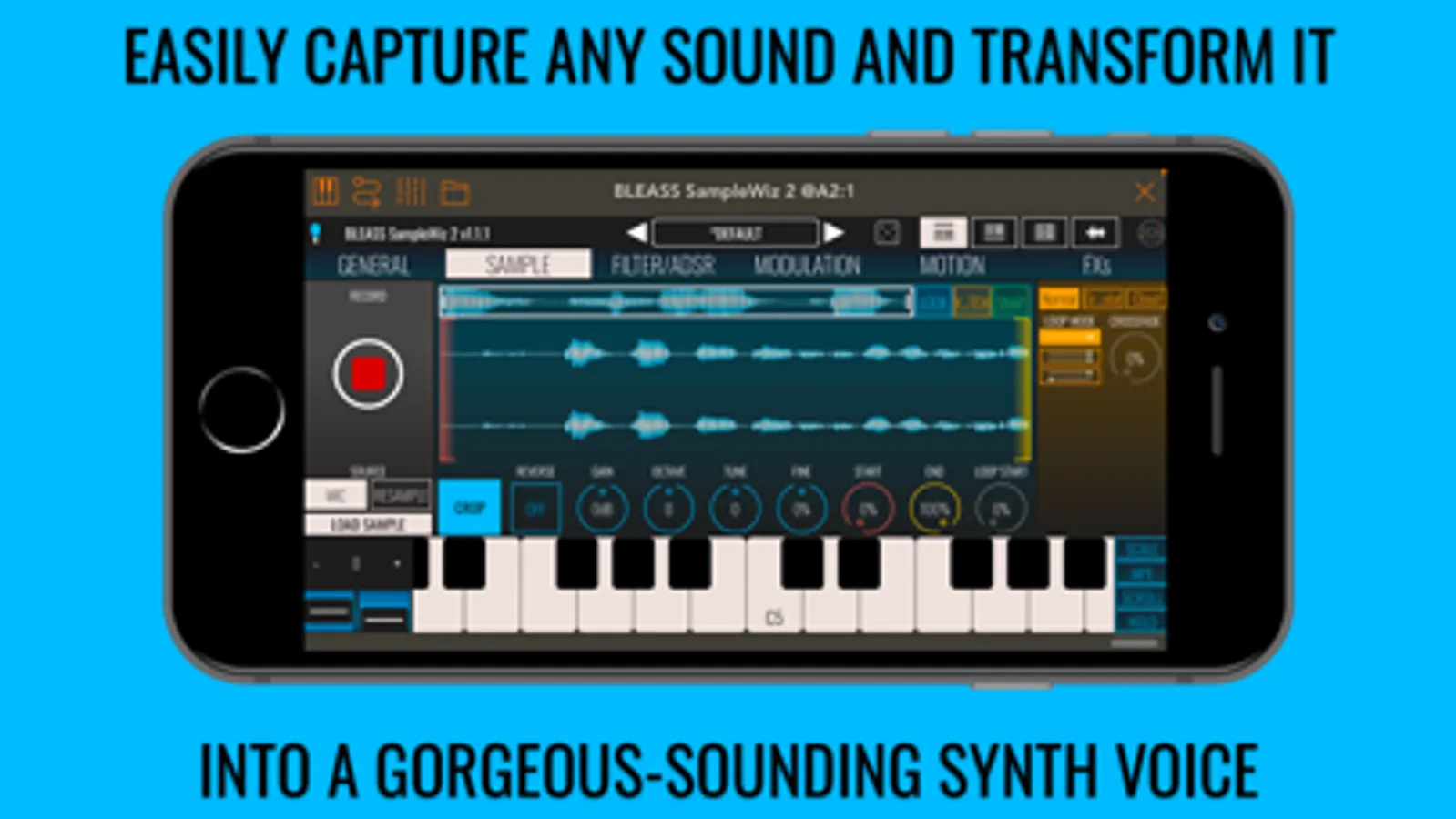 With its unique iOS / desktop interoperability, BLEASS SampleWiz 2 fits in with your way of creating and performing too. You can capture and work on sounds whilst out-and-about using the iOS App or AUv3 plugin, then transfer your creation to your computer via AirPlay or iCloud where you can incorporate it into a bigger project. Conversely, you can take a favourite sound from your Windows or Mac computer and transfer it to your iPad or iPhone ready for use in a live performance, where you to take full advantage of the iOS version’s intuitive touch screen performance controls.