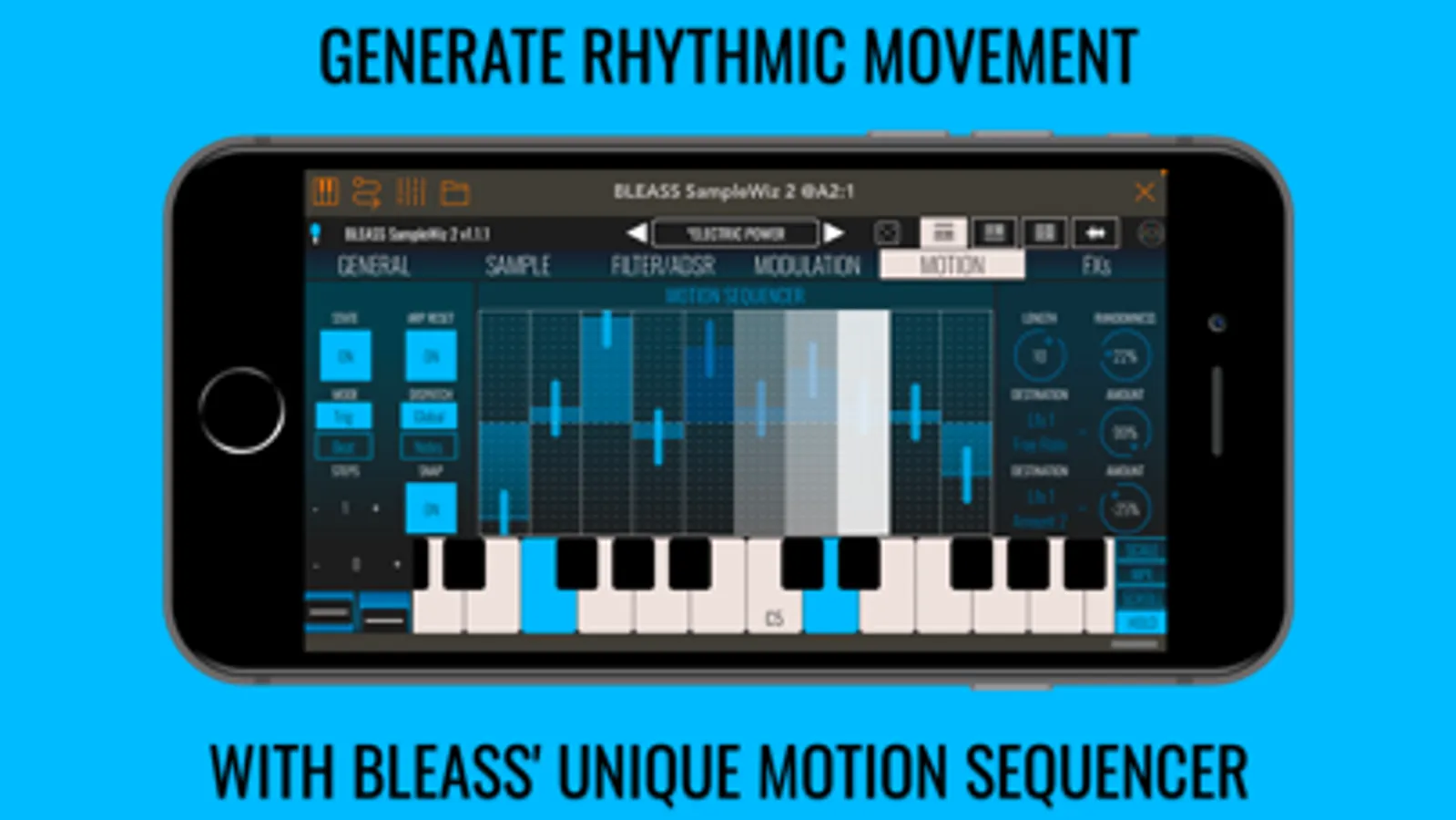 Creating original sounds with BLEASS SampleWiz 2 is as easy and fun as it is to load and play presets. The UI has been carefully designed to give a natural, intuitive workflow, with delightfully simple sampling or import of sounds, and a comprehensive suite of tools for chopping, granularizing, modulating, and adding effects to your sound designs.