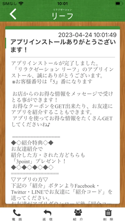 リーフのアプリをSNSを通じてお友達に紹介する事ができます。