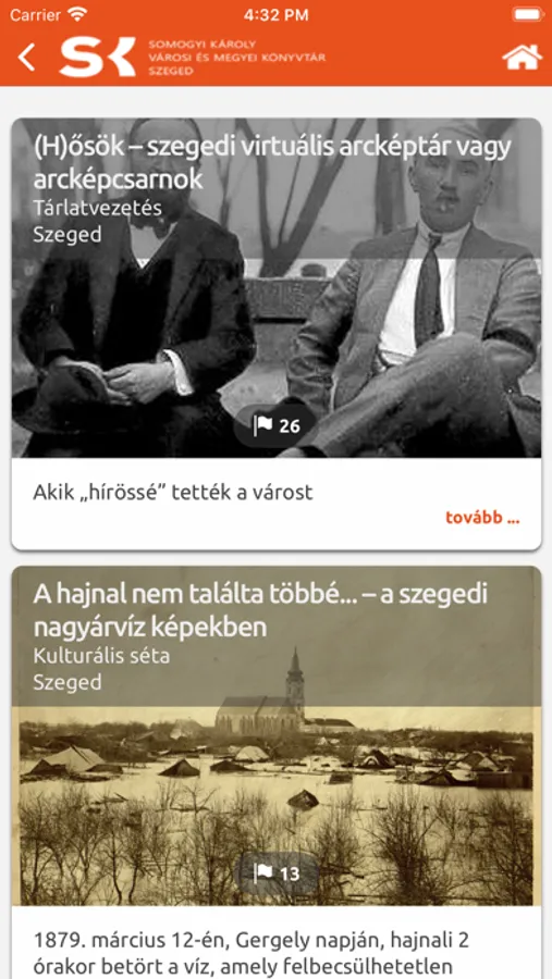 Tájékozódjon állományunkról, és programjainkról applikációnk segítségével. Fedezze fel Szegedet sétáink során.