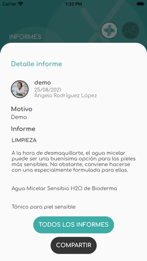 Esta aplicación está conectada a una aplicación web que permite al usuario acceder a sus informes, gestionar sus citas, recibir alertas y enviar consultas al profesional.