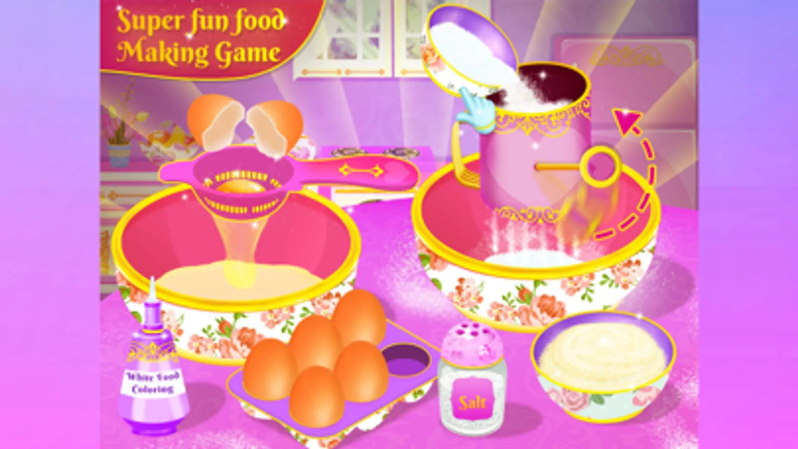 —> Tons of realistic beautiful and royal cooking tools to use like oven, piping bags, mixure, sifter, bowls, food safe pen, food safe colors/paints, spatula, and much more