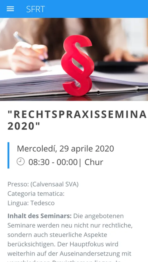 Mit der SFRT App haben Sie Zugang zu allen Anmeldungen und Teilnahmen, an denen Sie teilgenommen haben.