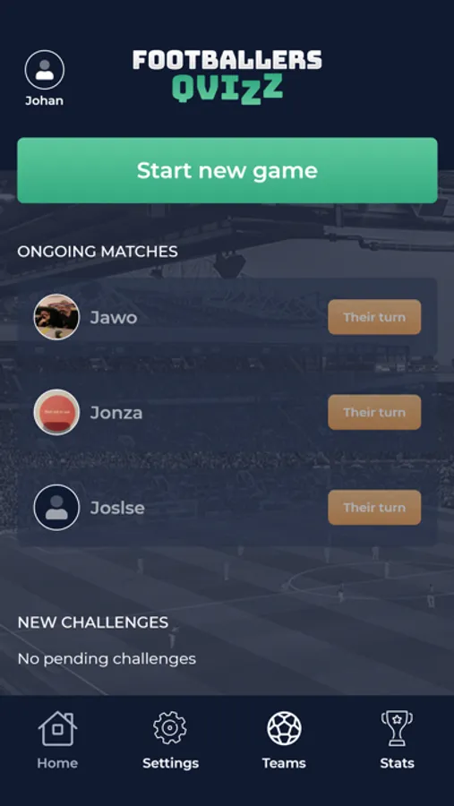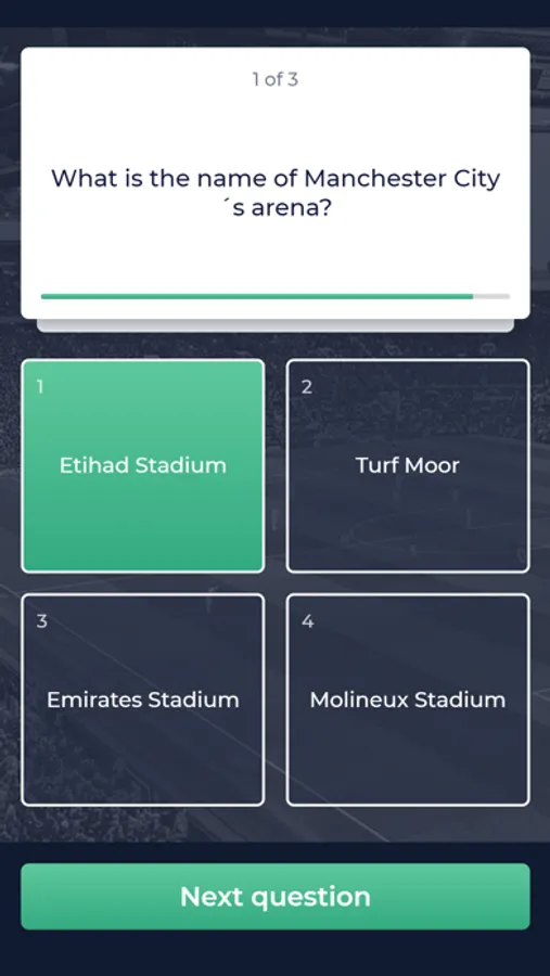 A quiz in the world of football. Who knows the most of Premier League, La Liga, Serie A and Bundesliga? Challenge a friend in three rounds. Each round has three questions. 6 categorys available, Players, Clubs, Arenas, Managers, It´s personal and Leagues.