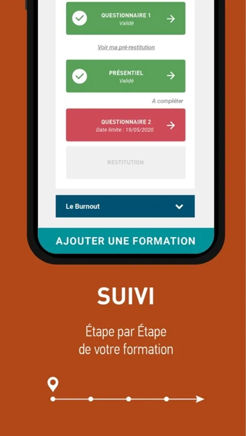 Gérez vos formations professionnelles de A à Z depuis votre smartphone : choix de la formation, évaluation, téléchargement de votre attestation de participation.