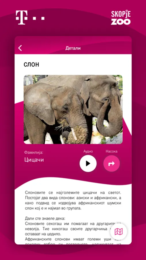 The mobile application “Skopje ZOO” is developed by Makedonski Telekom as a special project within the partnership between the company and the ZOO of the City of Skopje.