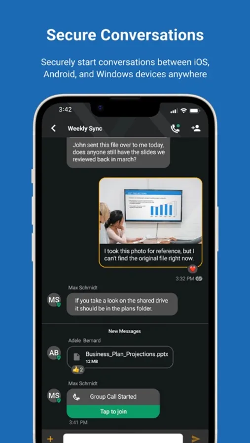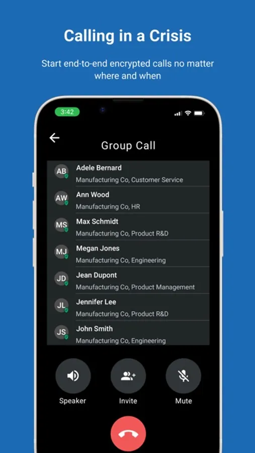 • Secure group voice calls with an existing group, or create a new group with those you need to speak with now