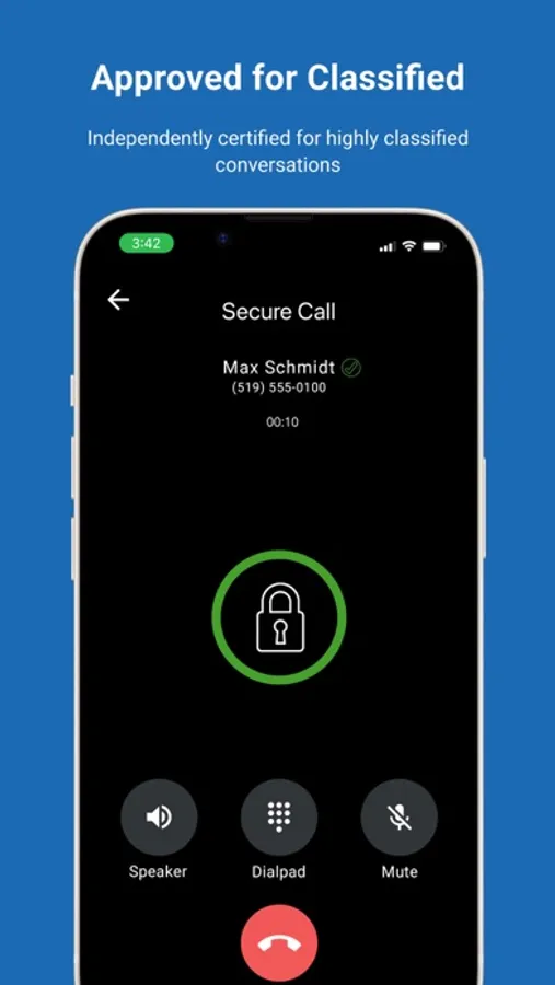 • Voice and message communication secured with strong data-in-transit (DIT) and data-at-rest (DAR) encryption