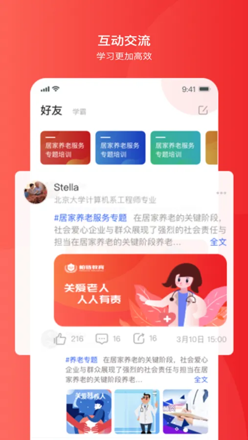 俱佳福是由北京柏链教育教育科技有限公司针对养老产业的交流与学习推出的应用软件。面向学习类的平台工具,提供优质学习体验,面向国家产教改革提供一站式学习、实训、就业服务。