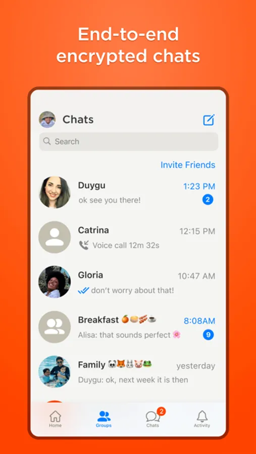 Your chats are end-to-end encrypted. No one outside of your chats can read them, not even HalloApp.