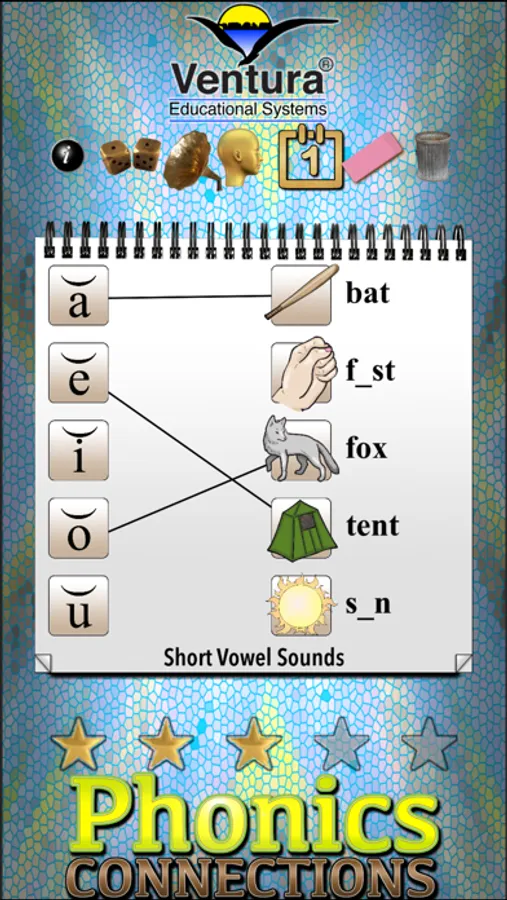 The app is designed to help students learn to read with ease and confidence. A connection from the vowel sound to the picture and word can be made using a finger, pointer, or Apple Pencil. Once the correct connection is made the word is pronounced and spelled using synthetic speech.