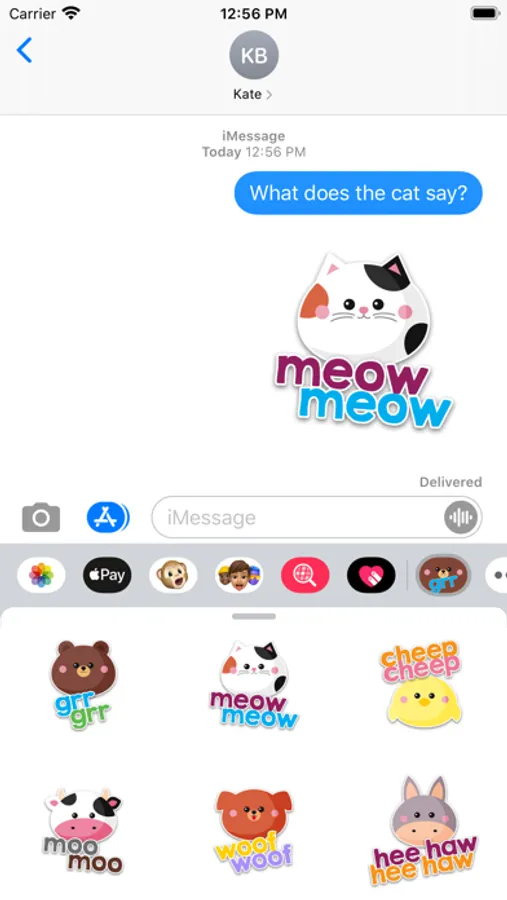 Send the stickers out as text messages or peel them and place them over bubbles, pictures or other stickers in iMessage. Also use them as camera effects both in iMessage and FaceTime.