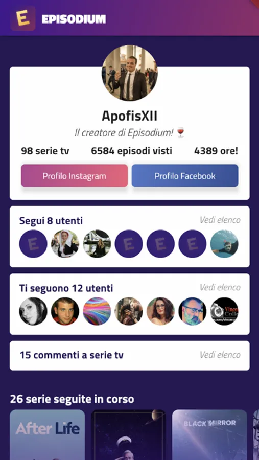 - Scheda "profilo": Contiene le informazioni pubbliche che riguardano il tuo profilo, quanti episodi hai già visto, le serie che segui, quali utenti segui e quali sono i tuoi follower.