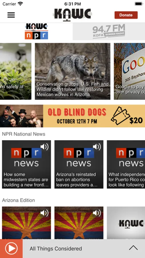 The KAWC / KOFA App allows you to listen to KAWC and KOFA Border Radio, pause and rewind the live audio, and view the program schedule for KAWC and KOFA all at once! You can explore and listen to On Demand content whenever you want, share stories with your friends, and wake up to KAWC and KOFA with the alarm clock!