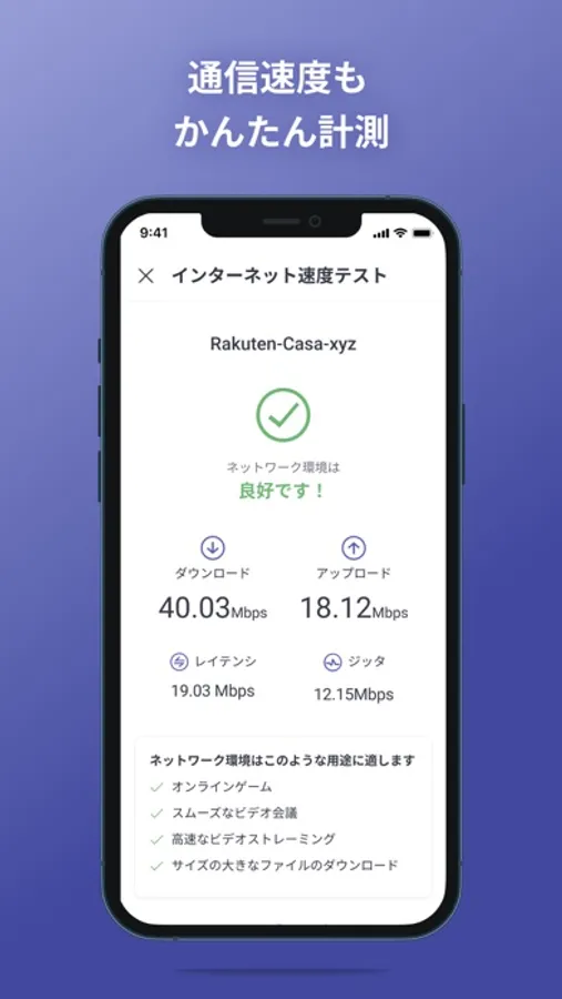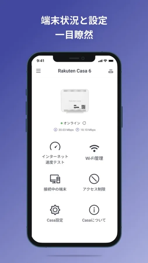 With the Rakuten Casa app, you can easily connect your smartphone to the Wi-Fi access point of your Rakuten Casa. Enjoy video streaming, music, and online games without worrying about mobile network data usage limits.