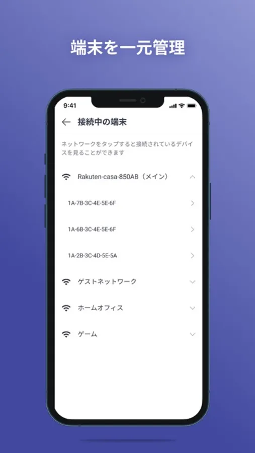 Rakuten Casa can provide simultaneous connection for up to 30 devices. Even guests invited to your home can connect to your Wi-Fi easily using the app.