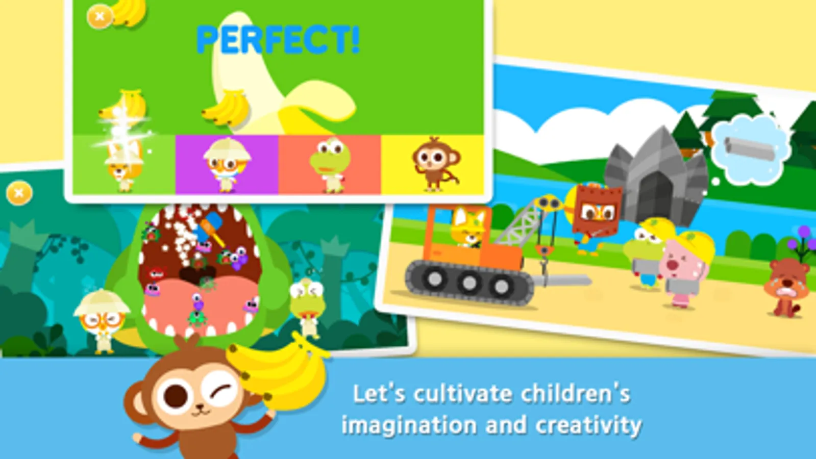 Enjoy a variety of games, including catching fish, puzzles, animal quizzes, and building houses!