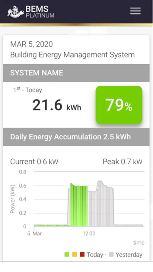Building Energy Management System of Bangchak site that provide measurement of Energy consumption and Environment and also air pollution for example: Temperature, Humidity, PM2.5, etc. All data show on both Application and Website