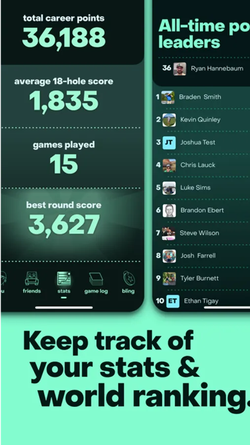 Set personal records, earn bag tags for special accomplishments, and compete against your friends with live group scoring. With access to over 38,000 courses around the world, load up ParPoints and head to your favorite course today, and play with anyone on any other course in real time, with a shared leaderboard.
