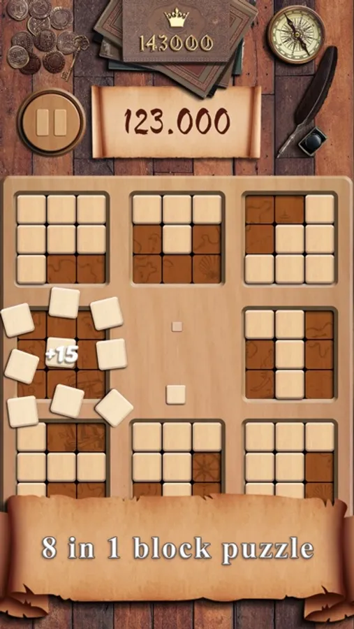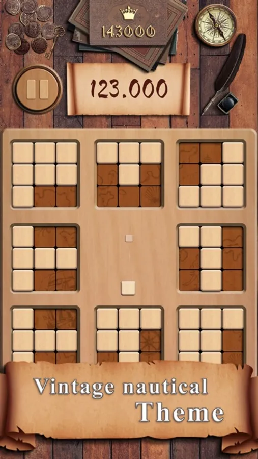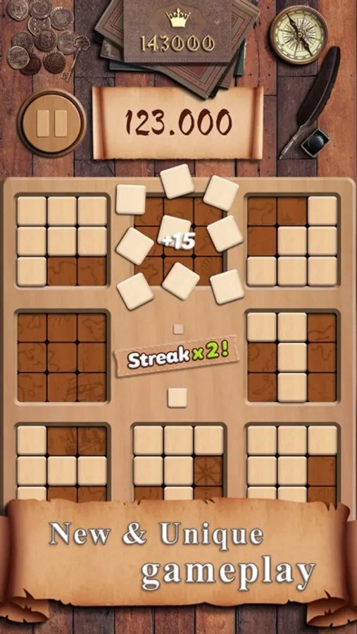 WOODY 88: FILL SQUARES PUZZLE is a rare masterpiece, which combines interesting and fairly unique gameplay with a pirate puzzle theme. This 8x8 square puzzle has you simply drag the given blocks to fill up and clear the 8 outer squares to get a high score! Once you complete a square, you will be rewarded with a single block to help you easily get the streak scores.