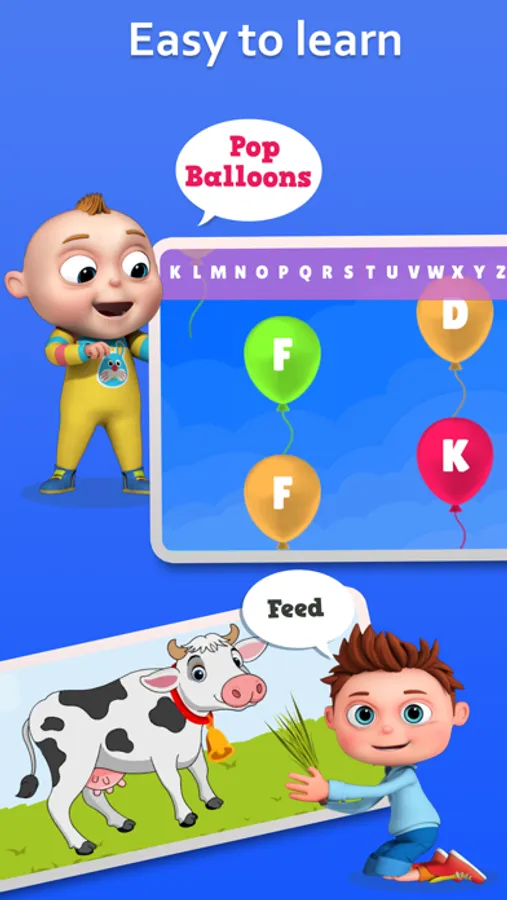 - Improves Co-ordination and Learning - Classic balloon popping game for with colorful balloon to learn alphabet, numbers, shapes, fruits and colors.