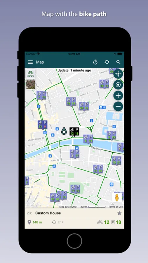 - Map of the city with the position of stations showing the number of bikes and the free stands for each station. It includes also the BIKE PATH.