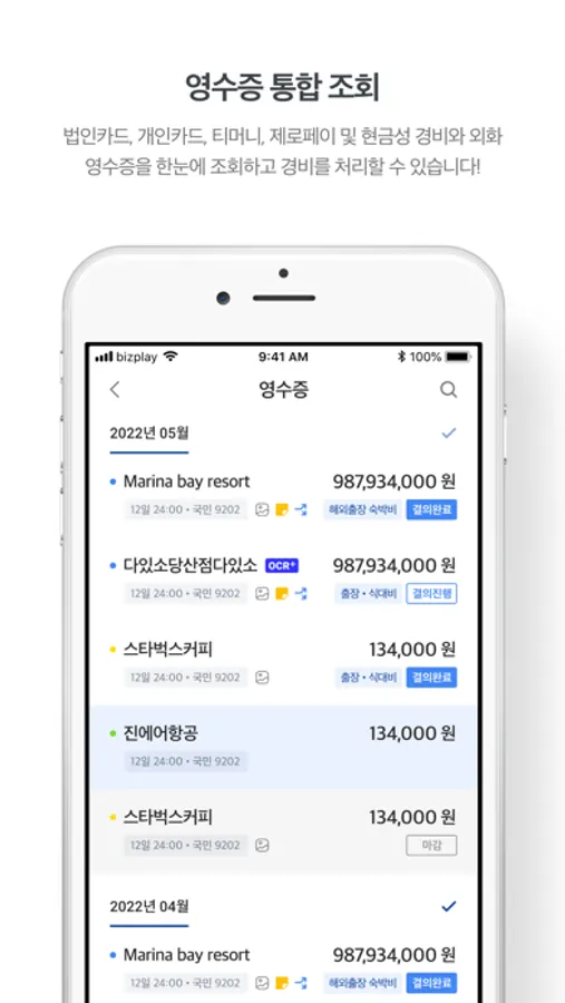 이제는 비즈플레이 모바일로 간편하게 경비처리하세요!