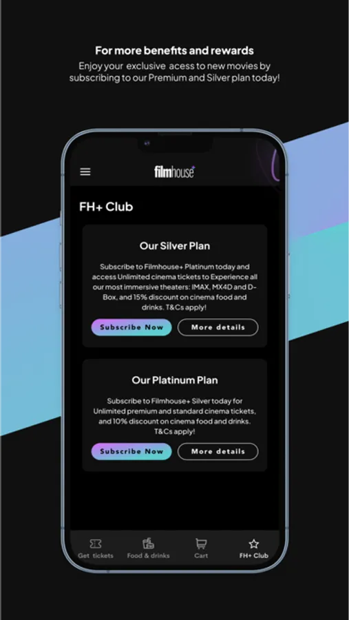 Filmhouse+ is your ticket to more, giving you unlimited access to all the offerings a moviegoer would dream of: Book your tickets and order your favorite savory food and drinks online, at a huge discount; beat the queues at your favorite cinema location.