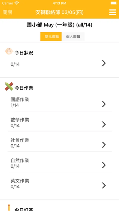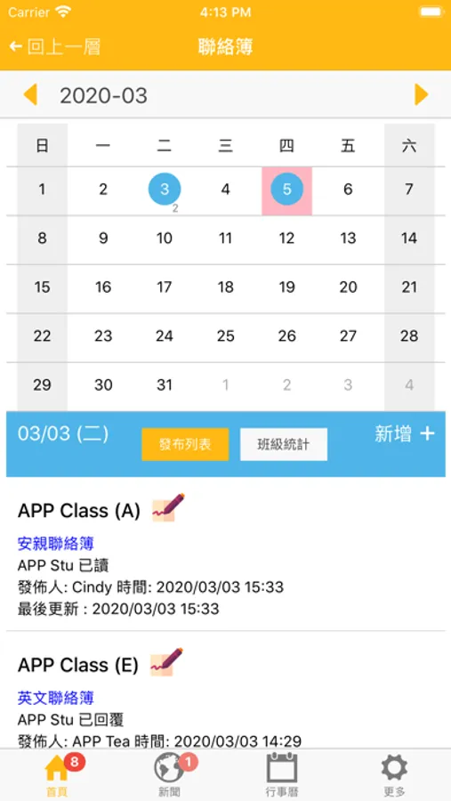 2. 班級通知單:接收班級教師或學校發送的訊息。